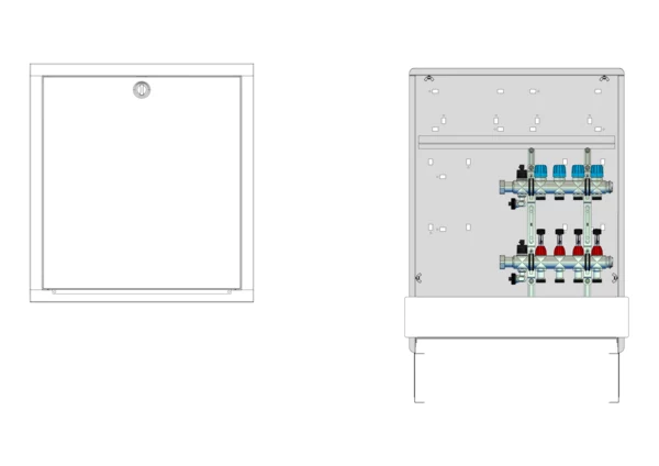 strawa Comfort Anschlussstation FBH-18-X-C80 4 Hkr.,BxHxT: 600x775x92 mm, ohne Anschlussgarnitur, Verteiler mit DFA min/max + THV für EGO-Aufnahme, Comfort-UP-Schrank mit Frontblende in RAL 9016