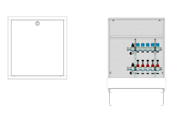strawa Comfort Anschlussstation FBH-18-X-C80 5 Hkr.,BxHxT: 600 x 775 x 92 mm, ohne Anschlussgarnitur, Verteiler mit DFA min/max + THV für EGO-Aufnahme, Comfort-UP-Schrank mit Frontblende in RAL 9016