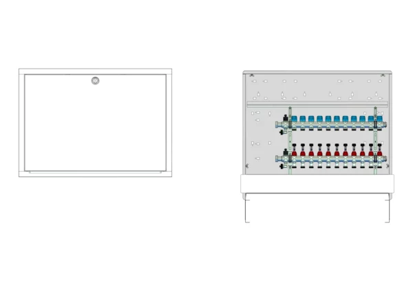strawa Comfort Anschlussstation FBH-18-X-C80 11 Hkr.,BxHxT: 900 x 775 x 92 mm, ohne Anschlussgarnitur, Verteiler mit DFA min/max + THV für EGO-Aufnahme, Comfort-UP-Schrank mit Frontblende in RAL 9016