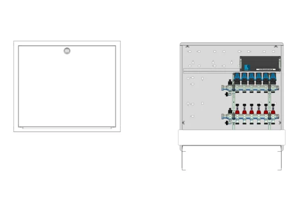 strawa Comfort Anschlussstation FBH-18-X-C80-EGO 6 Hkr.,BxHxT: 750x775x92 mm, ohne Anschlussgarnitur, Verteiler mit DFA min/max + THV, mit vorm. EGO-Regelantrieben u. Klemmleiste mit Vorverdraht., Comfort-UP-Schrank mit Frontbl. in RAL 9016