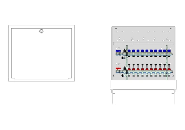strawa Comfort Anschlussstation FBH-63-H-C80 10 Hkr.,BxHxT: 750x775x92 mm, horiz. AG o. WMZ, Verteiler mit DFA 0-3 l/min + THV M30x1,5, Comfort-UP-Schrank mit Frontblende in RAL 9016