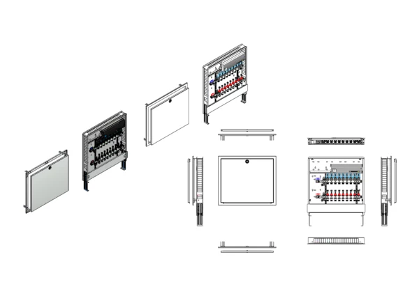 strawa Comfort Anschlussstation FBH-18-H-C80-EGO 9 Hkr.,BxHxT: 748x775x92 mm, horiz. AG o. WMZ, Verteiler mit DFA min/max + THV, mit vorm. EGO-Regelantrieben u. Klemmleiste mit Vorverdraht., Comfort-UP-Schrank mit Frontblende in RAL 9016