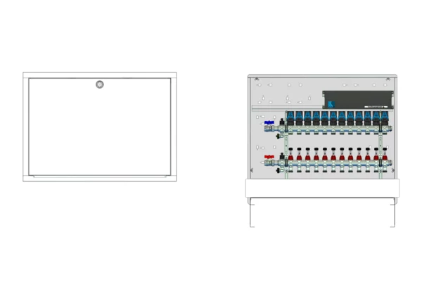 strawa Comfort Anschlussstation FBH-18-H-C80-EGO 12 Hkr.,BxHxT: 900 x 775 x 92 mm, horiz. AG o. WMZ, Verteiler mit DFA min/max + THV, mit vorm. EGO-Regelantrieben u. Klemmleiste mit Vorverdraht., Comfort-UP-Schrank mit Frontblende in RAL 9016