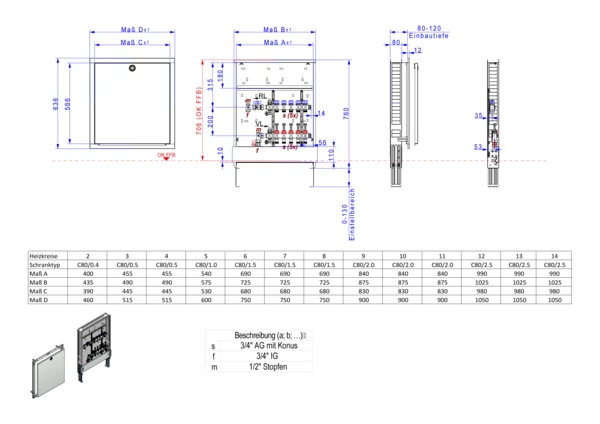 strawa Comfort Anschlussstation FBH-63-V-C80 10 Hkr.,BxHxT: 900 x 775 x 92 mm, vert. Anschlussgarnitur, Verteiler mit DFA 0-3 l/min + THV M30x1,5, Comfort-UP-Schrank mit Frontblende in RAL 9016
