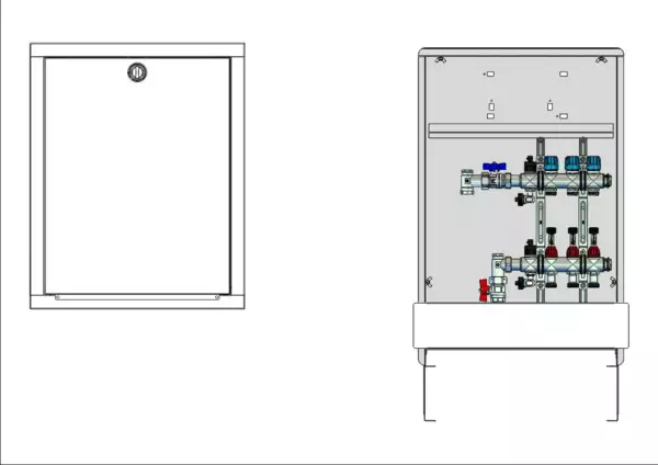 strawa Comfort Anschlussstation FBH-18-V-C80 3 Hkr.,BxHxT: 515 x 775 x 92 mm, vert. AG. o. WMZ, Verteiler mit DFA min/max + THV, Comfort-UP-Schrank mit Frontblende in RAL 9016