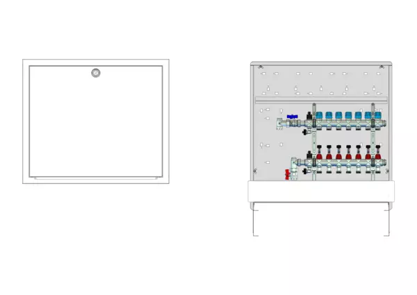 strawa Comfort Anschlussstation FBH-18-V-C80 7 Hkr.,BxHxT: 750x775x92 mm, vert. AG. o. WMZ, Verteiler mit DFA min/max + THV, Comfort-UP-Schrank mit Frontblende in RAL 9016