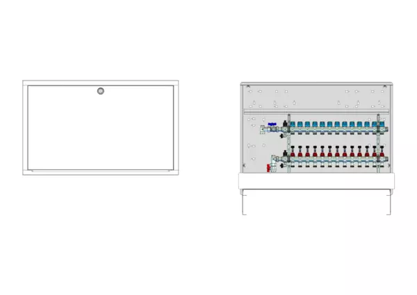 strawa Comfort Anschlussstation FBH-18-V-C80 13 Hkr.,BxHxT: 1050x775x92 mm, vert. AG. o. WMZ, Verteiler mit DFA min/max + THV, Comfort-UP-Schrank mit Frontblende in RAL 9016