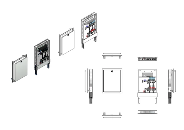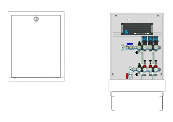 strawa Comfort Anschlussstation FBH-18-V-C80-EGO 3 Hkr.,BxHxT: 515x776x92 mm, vert. AG. o. WMZ, Verteiler mit DFA min/max + THV, mit vorm. EGO-Regelantrieben u. Klemmleiste mit Vorverdraht., Comfort-UP-Schrank mit Frontblende in RAL 9016