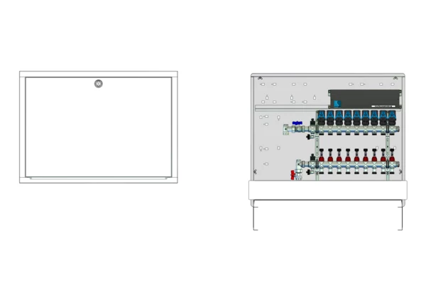 strawa Comfort Anschlussstation FBH-18-V-C80-EGO 9 Hkr.,BxHxT: 900 x 775 x 92 mm, vert. AG. o. WMZ, Verteiler mit DFA min/max + THV, mit vorm. EGO-Regelantrieben u. Klemmleiste mit Vorverdraht., Comfort-UP-Schrank mit Frontblende in RAL 9016