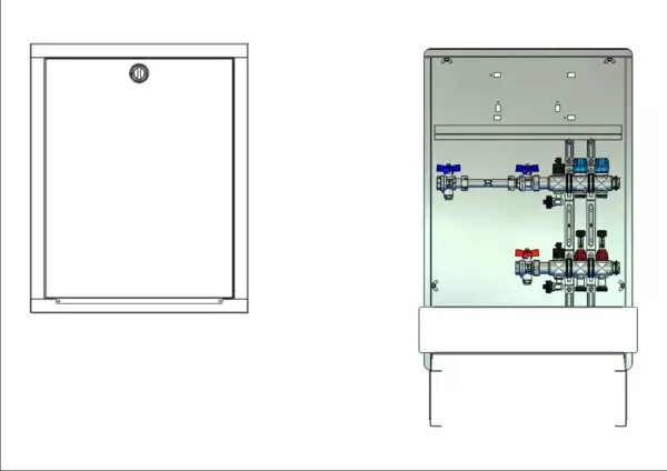 strawa Comfort Anschlussstation FBH-18-H-WMZ-C80 2 Hkr.,BxHxT: 598x775x92 mm, horiz. AG. m. WMZ, Verteiler mit DFA min/max + THV für EGO-Aufnahme, Comfort-UP-Schrank mit Frontblende in RAL 9016