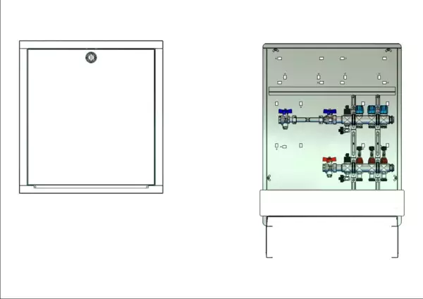 strawa Comfort Anschlussstation FBH-18-H-WMZ-C80 3 Hkr.,BxHxT: 600 x 775 x 92 mm, horiz. AG. m. WMZ, Verteiler mit DFA min/max + THV für EGO-Aufnahme, Comfort-UP-Schrank mit Frontblende in RAL 9016