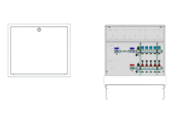 strawa Comfort Anschlussstation FBH-18-H-WMZ-C80 5 Hkr.,BxHxT: 748x775x92 mm, horiz. AG. m. WMZ, Verteiler mit DFA min/max + THV für EGO-Aufnahme, Comfort-UP-Schrank mit Frontblende in RAL 9016