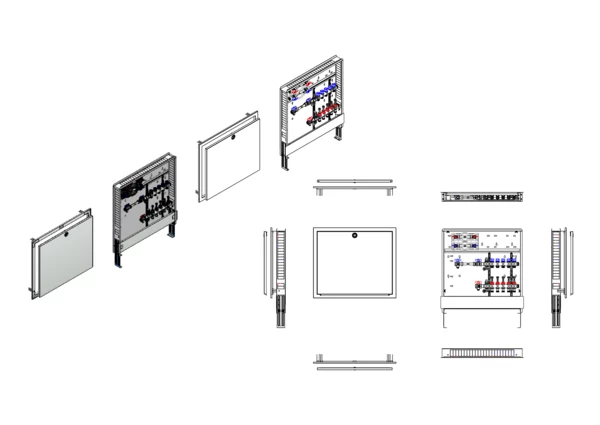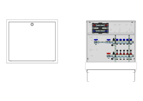 strawa Comfort Anschlussstation FBH-63-H-W2-WMZ-C80 5 Hkr.,BxHxT: 750x775x92 mm, horiz. AG. m. WMZ, Verteiler mit DFA 0-3 l/min + THV M30x1,5, Wasserzählerstr. TW kalt u. warm, Comfort-UP-Schrank mit Frontblende in RAL 9016