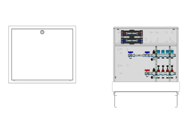 strawa Comfort Anschlussstation FBH-18-H-W2-WMZ-C80 4 Hkr.,BxHxT: 748x775x92 mm, horiz. AG. m. WMZ, Verteiler mit DFA min/max + THV für EGO-Aufnahme, Wasserzählerstr. TW kalt und warm, Comfort-UP-Schrank mit Frontblende in RAL 9016