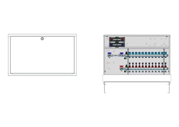 strawa Comfort Anschlussstation FBH-18-H-W2-WMZ-C80 12 Hkr.,BxHxT: 1048x775x92 mm, horiz. AG. m. WMZ, Verteiler mit DFA min/max + THV für EGO-Aufnahme, Wasserzählerstr. TW kalt und warm, Comfort-UP-Schrank mit Frontblende in RAL 9016