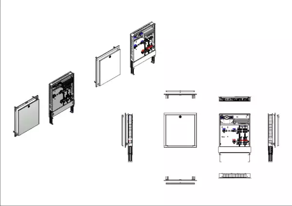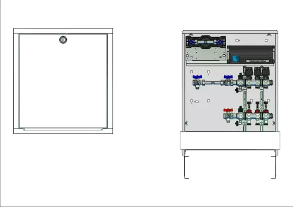 strawa Comfort Anschlussstation FBH-63-H-W1-WMZ-C80-E 3 Hkr.,BxHxT: 600x775x92 mm, horiz. AG. m. WMZ, Verteiler m. DFA 0-3 l/min + THV M30x1,5, vorm. Stellantr. u. Klemml. m. Vorverdraht., Wasserzählerstr. TW kalt, CUP-Schrank m. Frontbl. in RAL 9016