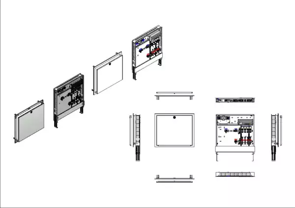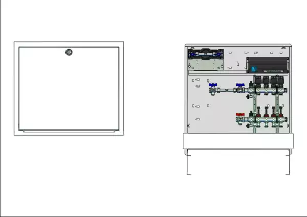 strawa Comfort Anschlussstation FBH-63-H-W1-WMZ-C80-E 4 Hkr.,BxHxT: 750x775x92 mm, horiz. AG. m. WMZ, Verteiler m. DFA 0-3 l/min + THV M30x1,5, vorm. Stellantr. u. Klemml. m. Vorverdraht., Wasserzählerstr. TW kalt, CUP-Schrank m. Frontbl. in RAL 9016