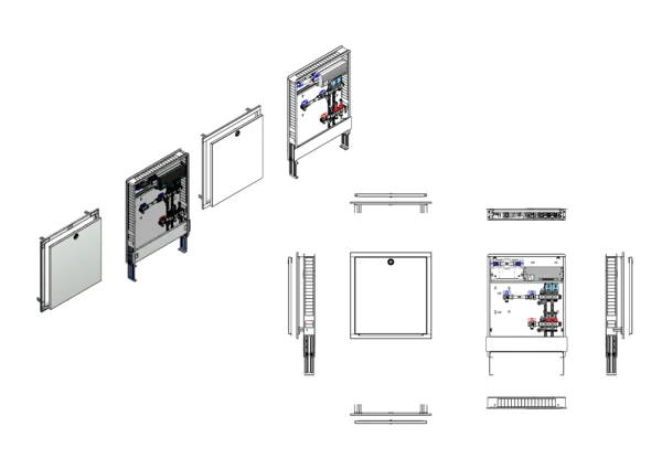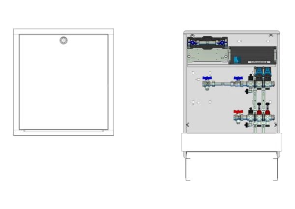 strawa Comfort Anschlussstation FBH-18-H-W1-WMZ-C80-EGO 2 Hkr.,BxHxT: 598x775x92 mm, horiz. AG. m. WMZ, Verteiler m. DFA min/max + THV, m. vorm. EGO-Regelantr. u. Klemml. m. Vorverdr., Wasserzählerstr. TW kalt, CUP-Schrank m. Frontbl. in RAL 9016