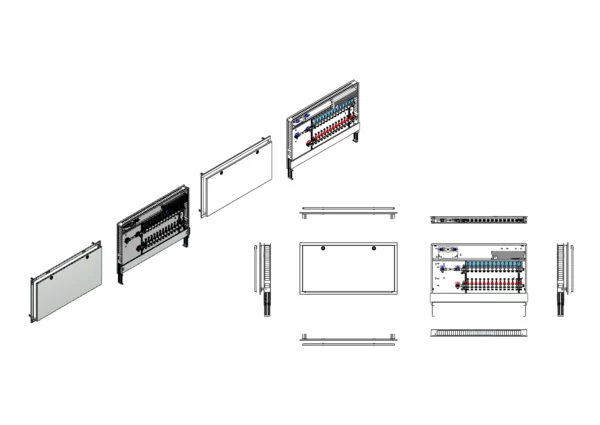 strawa Comfort Anschlussstation FBH-18-H-W1-WMZ-C80-EGO 14 Hkr.,BxHxT: 1198x775x92 mm, horiz. AG. m. WMZ, Verteiler m. DFA min/max + THV, m. vorm. EGO-Regelantr. u. Klemml. m. Vorverdr., Wasserzählerstr. TW kalt, CUP-Schrank m. Frontbl. in RAL 9016