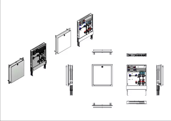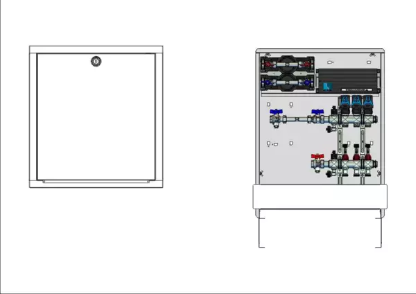 strawa Comfort Anschlussstation FBH-18-H-W2-WMZ-C80-EGO 3 Hkr.,BxHxT: 598x775x92 mm, horiz. AG. m. WMZ, Verteiler m. DFA min/max + THV, m. vorm. EGO-Regelantr. u. Klemml. m. Vorverdr., Wasserzählerstr. TW kalt, CUP-Schrank m. Frontbl. in RAL 9016