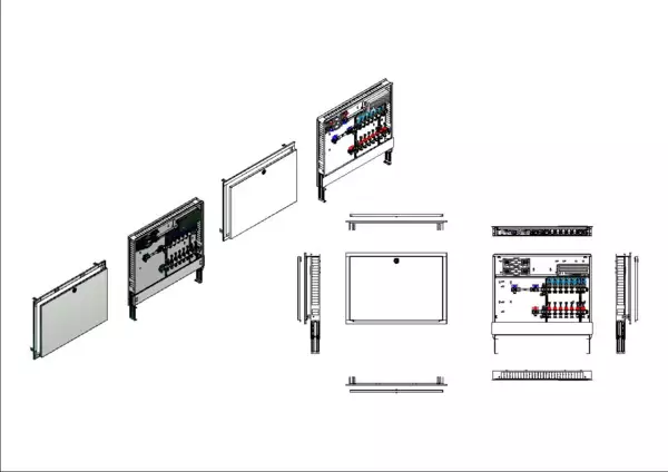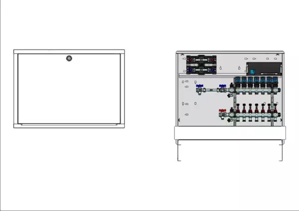 strawa Comfort Anschlussstation FBH-18-H-W2-WMZ-C80-EGO 7 Hkr.,BxHxT: 898x775x92 mm, horiz. AG. m. WMZ, Verteiler m. DFA min/max + THV, m. vorm. EGO-Regelantr. u. Klemml. m. Vorverdr., Wasserzählerstr. TW kalt, CUP-Schrank m. Frontbl. in RAL 9016