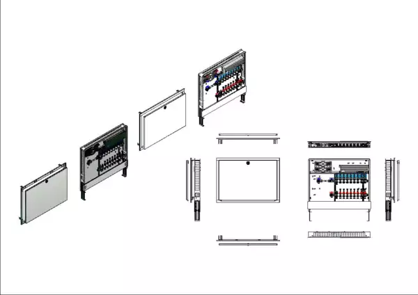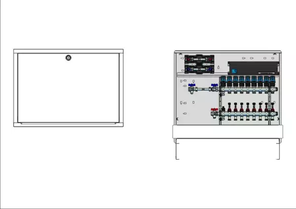 strawa Comfort Anschlussstation FBH-18-H-W2-WMZ-C80-EGO 9 Hkr.,BxHxT: 898x775x92 mm, horiz. AG. m. WMZ, Verteiler m. DFA min/max + THV, m. vorm. EGO-Regelantr. u. Klemml. m. Vorverdr., Wasserzählerstr. TW kalt, CUP-Schrank m. Frontbl. in RAL 9016