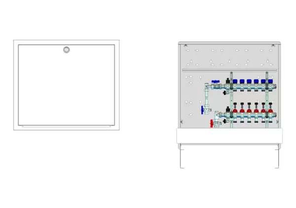 strawa Comfort Anschlussstation FBH-63-V-WMZ-C80 6 Hkr.,BxHxT: 748x775x92 mm, vert. AG. m. WMZ, Verteiler mit DFA 0-3 l/min + THV M30x1,5, Comfort-UP-Schrank mit Frontblende in RAL 9016
