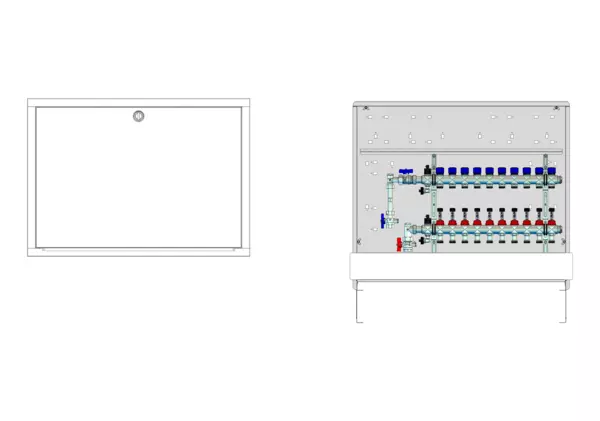 strawa Comfort Anschlussstation FBH-63-V-WMZ-C80 10 Hkr.,BxHxT: 900x775x92 mm, vert. AG. m. WMZ, Verteiler mit DFA 0-3 l/min + THV M30x1,5, Comfort-UP-Schrank mit Frontblende in RAL 9016