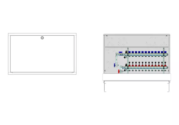 strawa Comfort Anschlussstation FBH-63-V-WMZ-C80 12 Hkr.,BxHxT: 1050x775x92 mm, vert. AG. m. WMZ, Verteiler mit DFA 0-3 l/min + THV M30x1,5, Comfort-UP-Schrank mit Frontblende in RAL 9016
