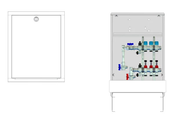 strawa Comfort Anschlussstation FBH-18-V-WMZ-C80 3 Hkr.,BxHxT: 515x775x92 mm, vert. AG. m. WMZ, Verteiler mit DFA min/max + THV für EGO-Aufnahme, Comfort-UP-Schrank mit Frontblende in RAL 9016
