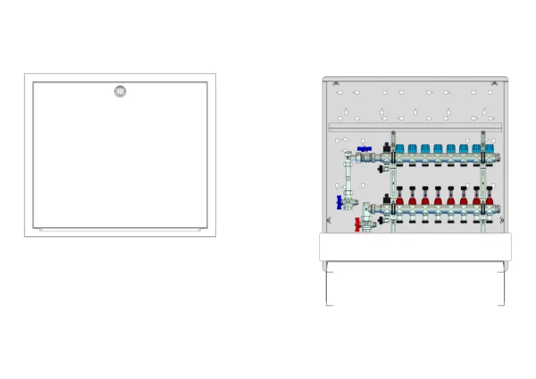 strawa Comfort Anschlussstation FBH-18-V-WMZ-C80 8 Hkr.,BxHxT: 750x775x92 mm, vert. AG. m. WMZ, Verteiler mit DFA min/max + THV für EGO-Aufnahme, Comfort-UP-Schrank mit Frontblende in RAL 9016