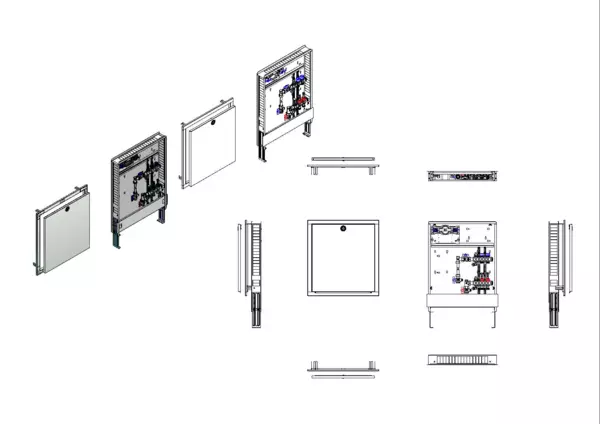 strawa Comfort Anschlussstation FBH-63-V-W1-WMZ-C80 2 Hkr.,BxHxT: 600x775x92 mm, vert. AG. m. WMZ, Verteiler m. DFA 0-3 l/min + THV M30x1,5, Wasserzählerstr. TW kalt, CUP-Schrank m. Frontbl. in RAL 9016