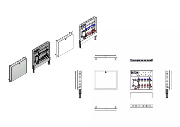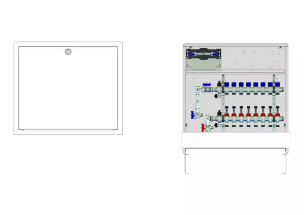 strawa Comfort Anschlussstation FBH-63-V-W1-WMZ-C80 8 Hkr.,BxHxT: 750x775x92 mm, vert. AG. m. WMZ, Verteiler m. DFA 0-3 l/min + THV M30x1,5, Wasserzählerstr. TW kalt, CUP-Schrank m. Frontbl. in RAL 9016