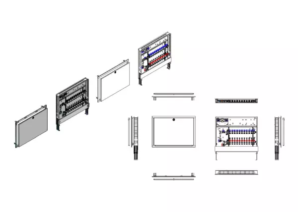 strawa Comfort Anschlussstation FBH-63-V-W1-WMZ-C80 11 Hkr.,BxHxT: 900x775x92 mm, vert. AG. m. WMZ, Verteiler m. DFA 0-3 l/min + THV M30x1,5, Wasserzählerstr. TW kalt, CUP-Schrank m. Frontbl. in RAL 9016
