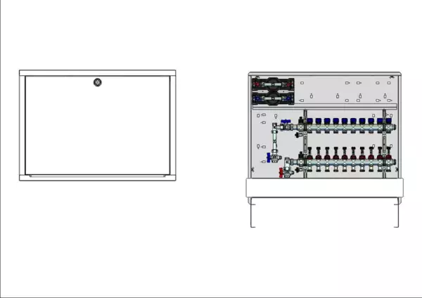 strawa Comfort Anschlussstation FBH-63-V-W2-WMZ-C80 10 Hkr.,BxHxT: 900x775x92 mm, vert. AG. m. WMZ, Verteiler m. DFA 0-3 l/min + THV M30x1,5, Wasserzählerstr. TW kalt u. warm, CUP-Schrank m. Frontbl. in RAL 9016