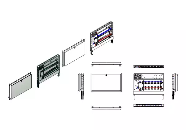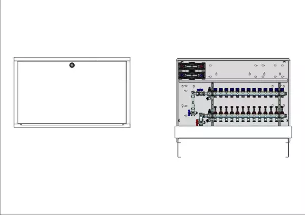 strawa Comfort Anschlussstation FBH-63-V-W2-WMZ-C80 13 Hkr.,BxHxT: 1050x775x92 mm, vert. AG. m. WMZ, Verteiler m. DFA 0-3 l/min + THV M30x1,5, Wasserzählerstr. TW kalt u. warm, CUP-Schrank m. Frontbl. in RAL 9016