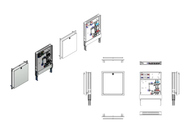 strawa Comfort Anschlussstation FBH-18-V-W2-WMZ-C80 2 Hkr.,BxHxT: 600x775x92 mm, vert. AG. m. WMZ, Verteiler mit DFA min/max + THV für EGO-Aufnahme, Wasserzählerstr. TW kalt u. warm, Comfort-UP-Schrank mit Frontblende in RAL 9016