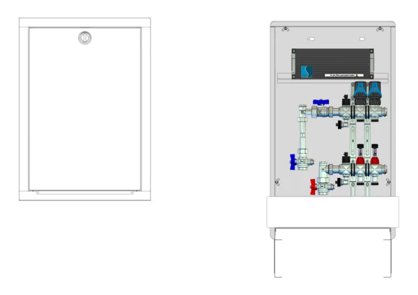 strawa Comfort Anschlussstation FBH-18-V-WMZ-C80-EGO 2 Hkr.,BxHxT: 460x775x92 mm, vert. AG. m. WMZ, Verteiler mit DFA min/max + THV für EGO-Aufnahme, mit vorm. EGO-Regelantr. u. Klemml. mit Vorverdr., Comfort-UP-Schrank mit Frontblende in RAL 9016
