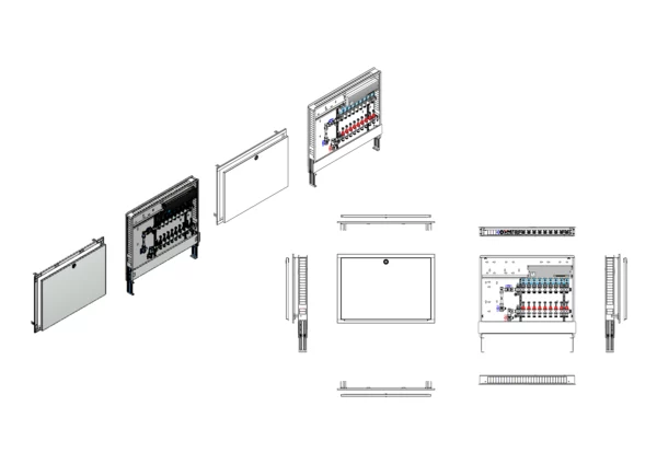 strawa Comfort Anschlussstation FBH-18-V-WMZ-C80-EGO 9 Hkr.,BxHxT: 900x775x92 mm, vert. AG. m. WMZ, Verteiler m. DFA min/max + THV für EGO-Aufnahme, m. vorm. EGO-Regelantr. u. Klemml. m. Vorverdr., Comfort-UP-Schrank m. Frontblende in RAL 9016