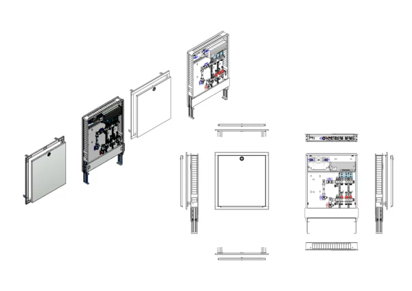strawa Comfort Anschlussstation FBH-18-V-W1-WMZ-C80-EGO 3 Hkr.,BxHxT: 600x775x92 mm, vert. AG. m. WMZ, Verteiler mit DFA min/max + THV, mit vorm. EGO-Regelantr. u. Klemml. mit Vorverdr., Wasserzählerstr. TW kalt, CUP-Schrank m. Frontblende RAL 9016