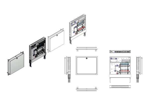 strawa Comfort Anschlussstation FBH-18-V-W1-WMZ-C80-EGO 6 Hkr.,BxHxT: 750x775x92 mm, vert. AG. m. WMZ, Verteiler mit DFA min/max + THV, mit vorm. EGO-Regelantr. u. Klemml. mit Vorverdr., Wasserzählerstr. TW kalt, CUP-Schrank m. Frontblende RAL 9016