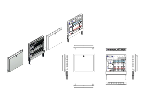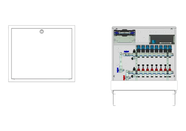 strawa Comfort Anschlussstation FBH-18-V-W1-WMZ-C80-EGO 8 Hkr.,BxHxT: 750x775x92 mm, vert. AG. m. WMZ, Verteiler mit DFA min/max + THV, mit vorm. EGO-Regelantr. u. Klemml. mit Vorverdr., Wasserzählerstr. TW kalt, CUP-Schrank m. Frontblende RAL 9016