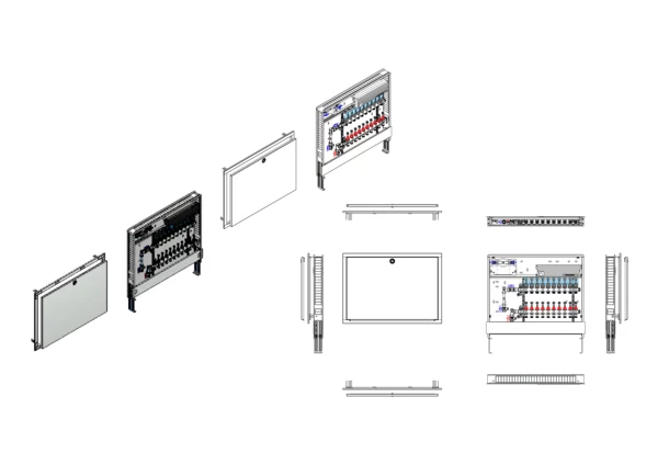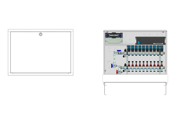 strawa Comfort Anschlussstation FBH-18-V-W1-WMZ-C80-EGO 10 Hkr.,BxHxT: 900x775x92 mm, vert. AG. m. WMZ, Verteiler mit DFA min/max + THV, mit vorm. EGO-Regelantr. u. Klemml. mit Vorverdr., Wasserzählerstr. TW kalt, CUP-Schrank m. Frontblende RAL 9016