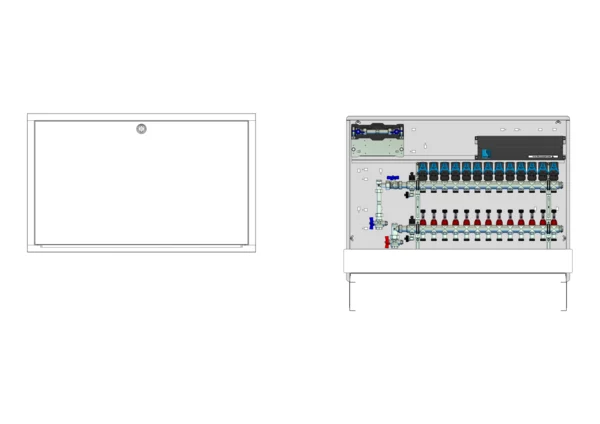 strawa Comfort Anschlussstation FBH-18-V-W1-WMZ-C80-EGO 13 Hkr.,BxHxT: 1050x775x92 mm, vert. AG. m. WMZ, Verteiler mit DFA min/max + THV, mit vorm. EGO-Regelantr. u. Klemml. mit Vorverdr., Wasserzählerstr. TW kalt, CUP-Schrank m. Frontblende RAL 9016