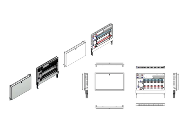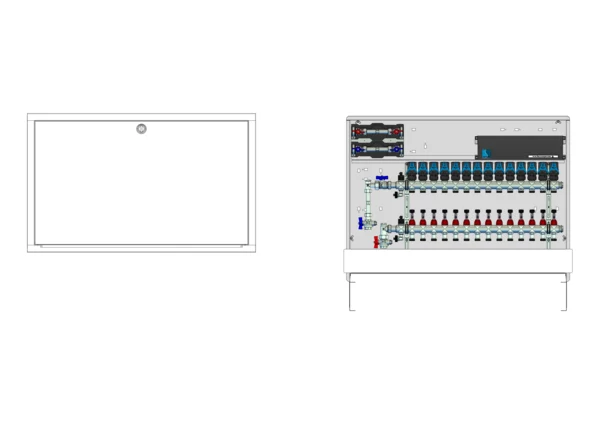 strawa Comfort Anschlussstation FBH-18-V-W2-WMZ-C80-EGO 14 Hkr.,BxHxT: 1050x775x92 mm, vert. AG m. WMZ, Verteiler mit DFA min/max+THV, m. vorm. EGO-Regelantr. u. Klemml. mit Vorverdr., Wasserzählerstr. TW kalt u. warm, CUP-Schrank m. Frontbl. RAL 9016