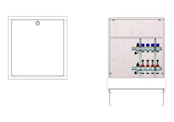 strawa Comfort Anschlussstation FBH-63-X-C69 4 Hkr.,BxHxT: 600x775x122 mm, ohne Anschlussgarnitur, Verteiler mit DFA 0-3 l/min + THV M30x1,5, Comfort-UP-Schrank mit Frontblende in RAL 9016