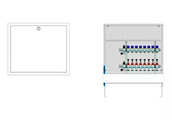 strawa Comfort Anschlussstation FBH-63-X-C69 8 Hkr.,BxHxT: 750x775x122 mm, ohne Anschlussgarnitur, Verteiler mit DFA 0-3 l/min + THV M30x1,5, Comfort-UP-Schrank mit Frontblende in RAL 9016