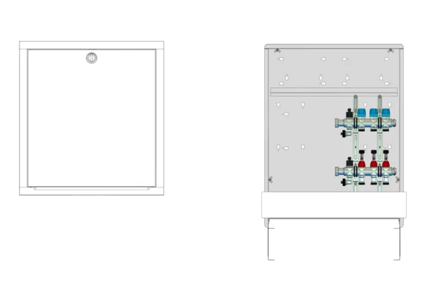 strawa Comfort Anschlussstation FBH-18-X-C69 3 Hkr.,BxHxT: 600 x 775 x 122 mm, ohne Anschlussgarnitur, Verteiler mit DFA min/max + THV für EGO-Aufnahme, Comfort-UP-Schrank mit Frontblende in RAL 9016