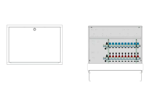 strawa Comfort Anschlussstation FBH-18-X-C69 10 Hkr.,BxHxT: 900 x 775 x 122 mm, ohne Anschlussgarnitur, Verteiler mit DFA min/max + THV für EGO-Aufnahme, Comfort-UP-Schrank mit Frontblende in RAL 9016