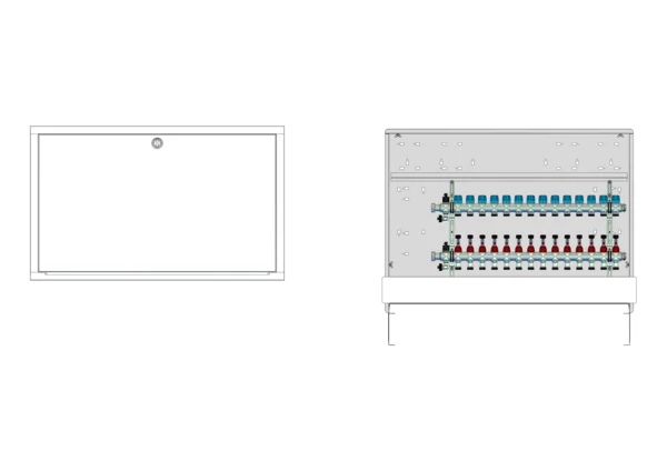 strawa Comfort Anschlussstation FBH-18-X-C69 14 Hkr.,BxHxT: 1050 x 775 x 122 mm, ohne Anschlussgarnitur, Verteiler mit DFA min/max + THV für EGO-Aufnahme, Comfort-UP-Schrank mit Frontblende in RAL 9016
